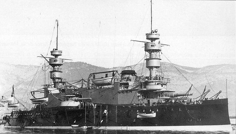 法国“玛索”号铁甲舰,排水量10558吨,4门340毫米主炮,1883年开工建造