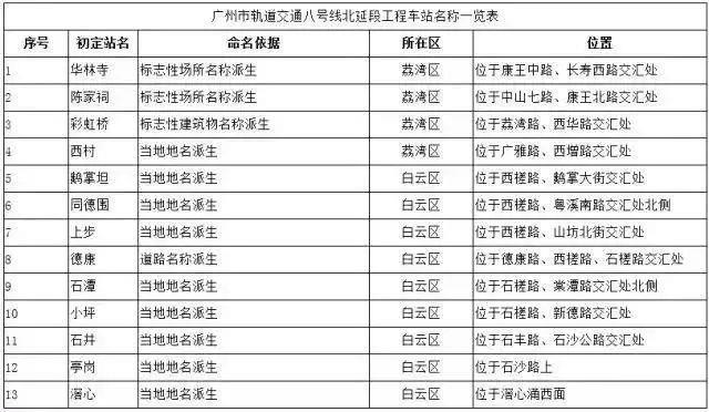 八号线北延段(文化公园至白云湖)全长16.1公里,均为地下线,沿线涉及荔湾区的车站包括华林寺站、陈家祠站、彩虹桥站、西村站。