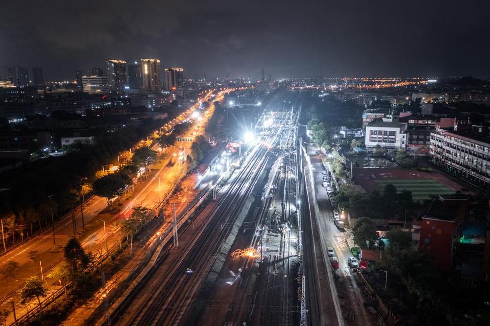 增城站站场建设已完成63%,5条涉铁下穿通道已完成90%。