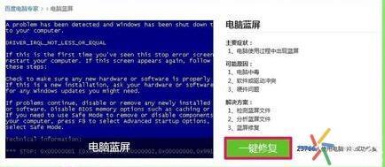 百度搜索输入:电脑蓝屏修复工具,左键点击:电脑蓝屏修复工具一键修复