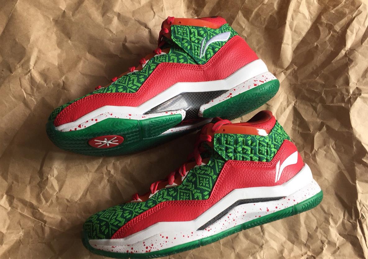 以经典的红配绿营造了浓厚的圣诞节日气息,绿色鞋面呈现出节日毛衣纹路,点缀红色细节,搭配泼墨中底。