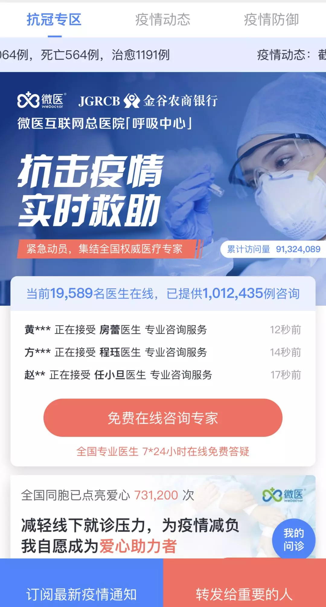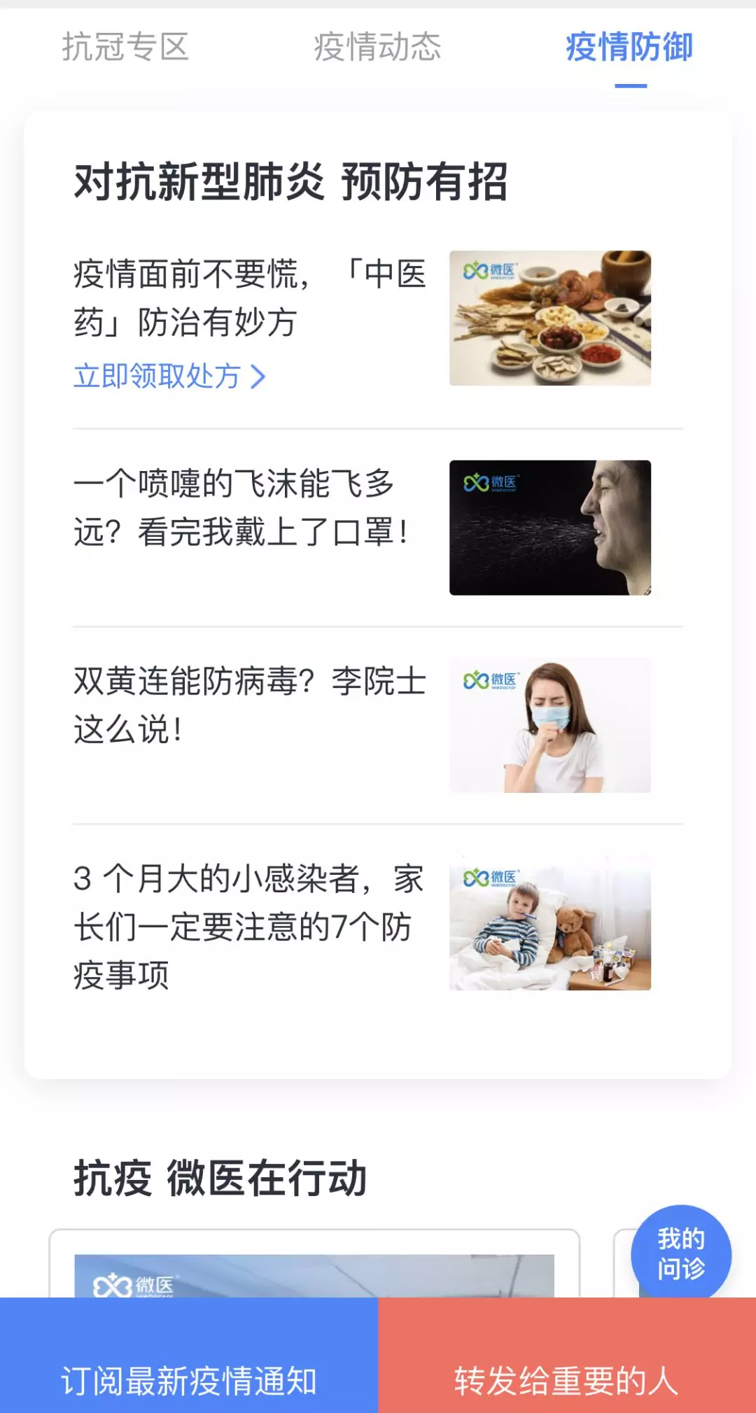 微医平台推出了“抗冠专区”,超12000多名专业医生在线免费为全国用户提供线上3分钟内响应的极速问诊服务。