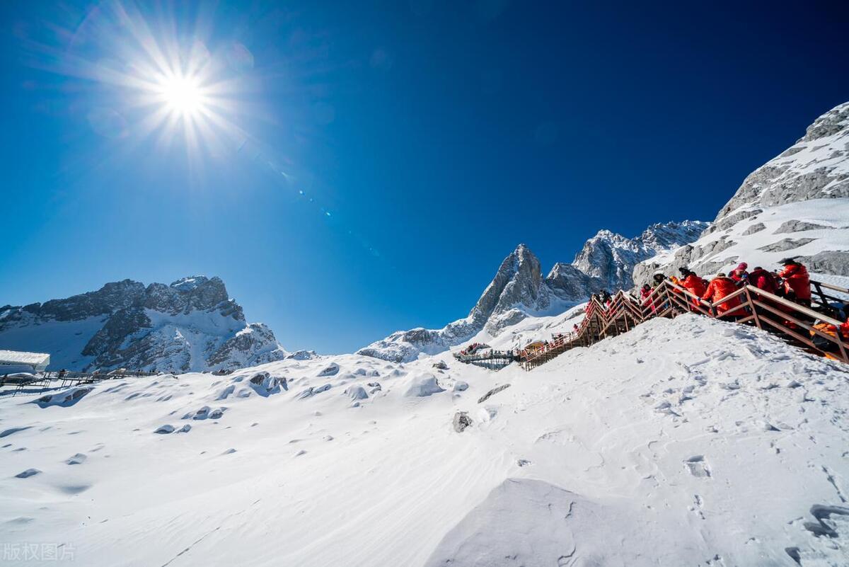 1.玉龙雪山:丽江周边的壮丽山脉,海拔约5596米,拥有险、奇、美、秀的景色,是云南最具代表性的自然景观之一。游客可以登山、滑雪或乘坐缆车欣赏雪山美景。