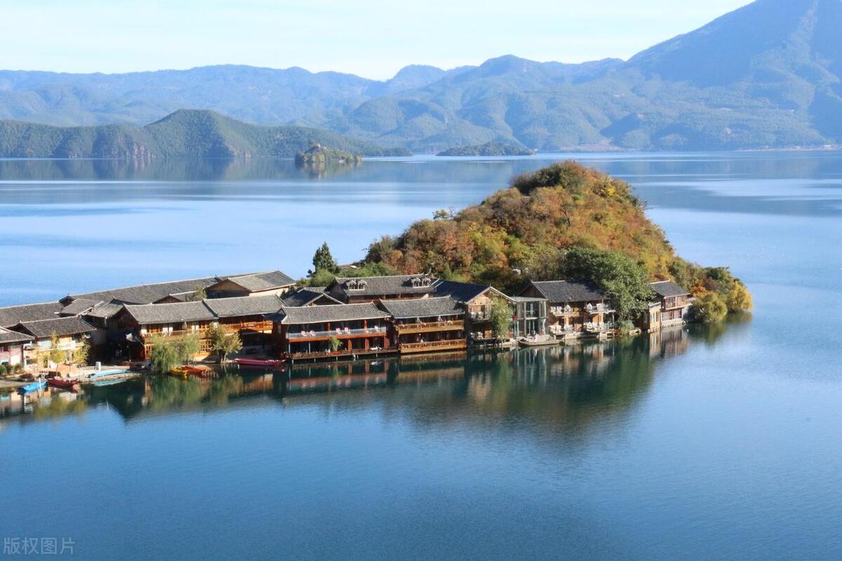 4.泸沽湖:位于丽江与四川省交界处,是中国最大的高原淡水湖泊之一,也是摩梭人的故乡。这里的风景美不胜收,有迷人的湖光山色以及壮丽的雪山倒影。在湖的北端,还有一个小岛叫做“女儿国”,是摩梭族特有的社会结构和生活方式的代表。
