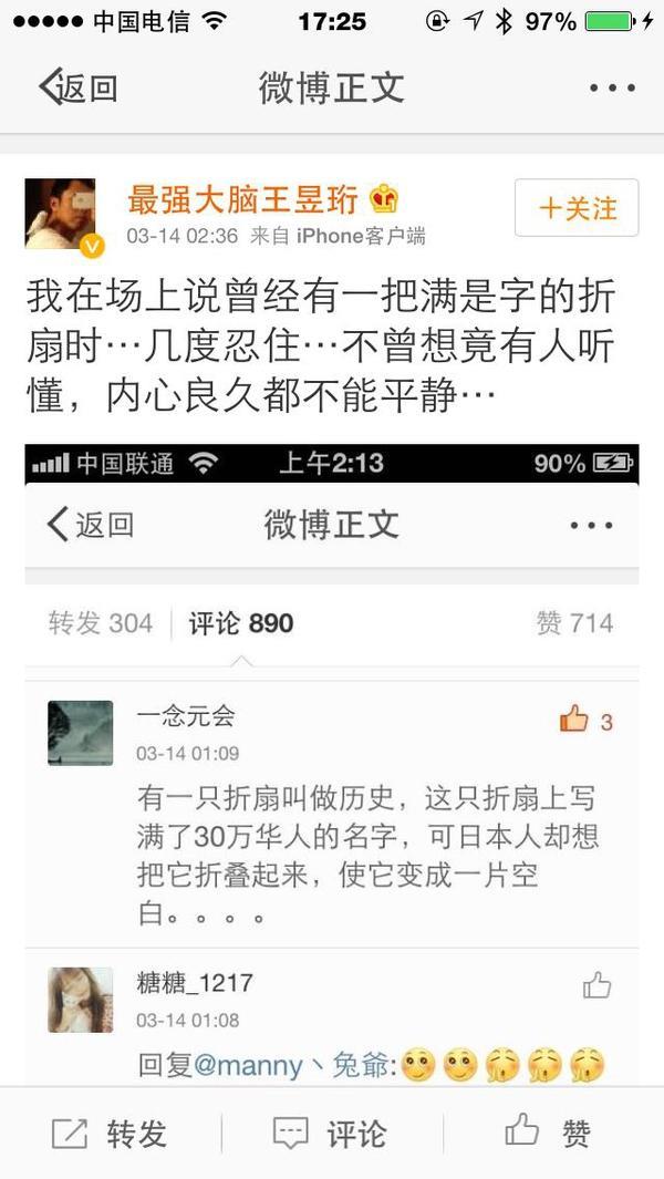 在与日本战队国际赛PK的赛场上,王昱珩与日本老爷爷看扇子,霸气王昱珩直接选择不看,而日本爷爷还拿着放大镜看,最终的结果也是王昱珩获胜