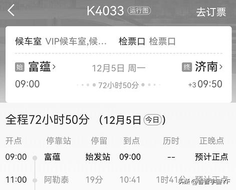 3富蕴站。今天早上9点,K4033次列车将由富蕴县始发,经停阿勒泰等疆内站点,终到山东济南。但阿勒泰站显示车次为K4032次且相关运行图一致,结合以往情况,此趟车次应为K4032次。