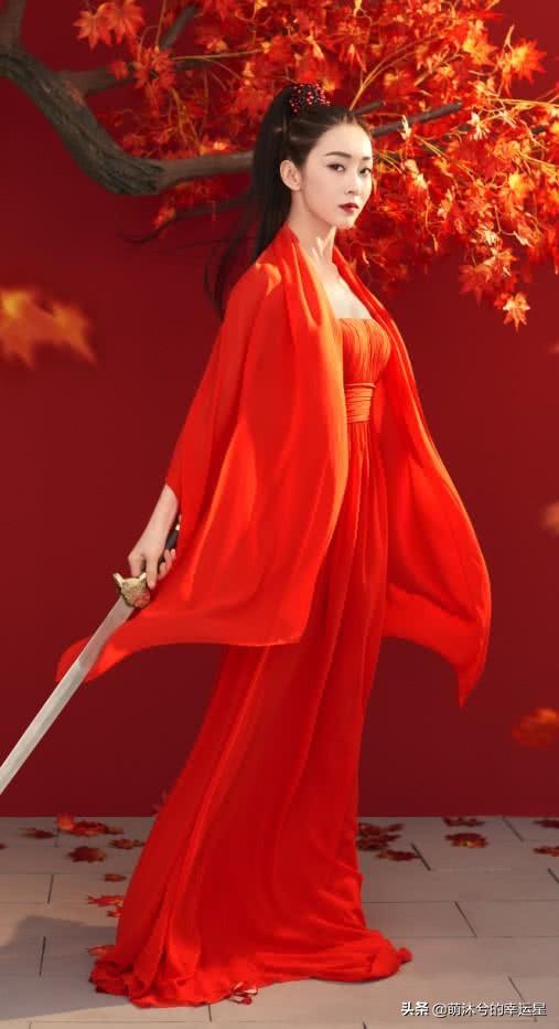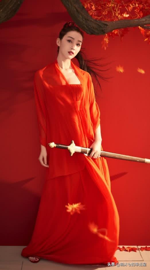 一身红衣的宣璐,不愧是那个“美丽善良的师姐”,犀利的眼神,让人看一眼就迷住了。红色长裙与背景的红色枫叶相呼应,两者融为一体,整个穿搭展现出修长的身材,优雅帅气的气质,更是吸引人。