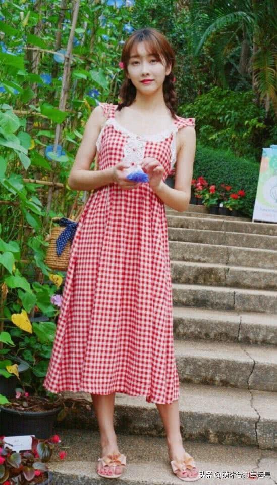 宣璐的古装造型很好看,其实现实中的私服也很养眼的,展现出可爱甜美的一面。一条红色的格纹连衣裙+拖鞋,简约风十足,也显得很舒适了,在夏天穿再合适不过了。
