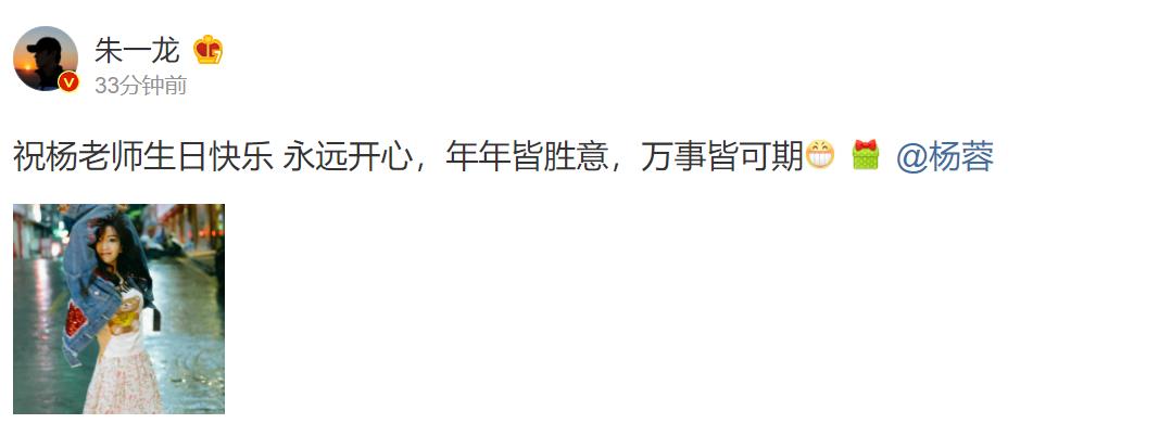 6月3日,朱一龙在社交平台发文为好友杨蓉庆生,配文写到“祝杨老师生日快乐,永远开心,年年皆胜意,万岁皆可期”。