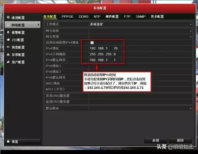 2. 网络配置-基本配置中修改录像机IP或者将摄像机断电重启