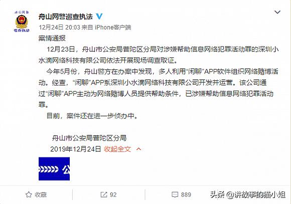 12月24日,关于“闲聊”app异常的相关消息传来,舟山网警巡查执法公布了《案情通报》。
