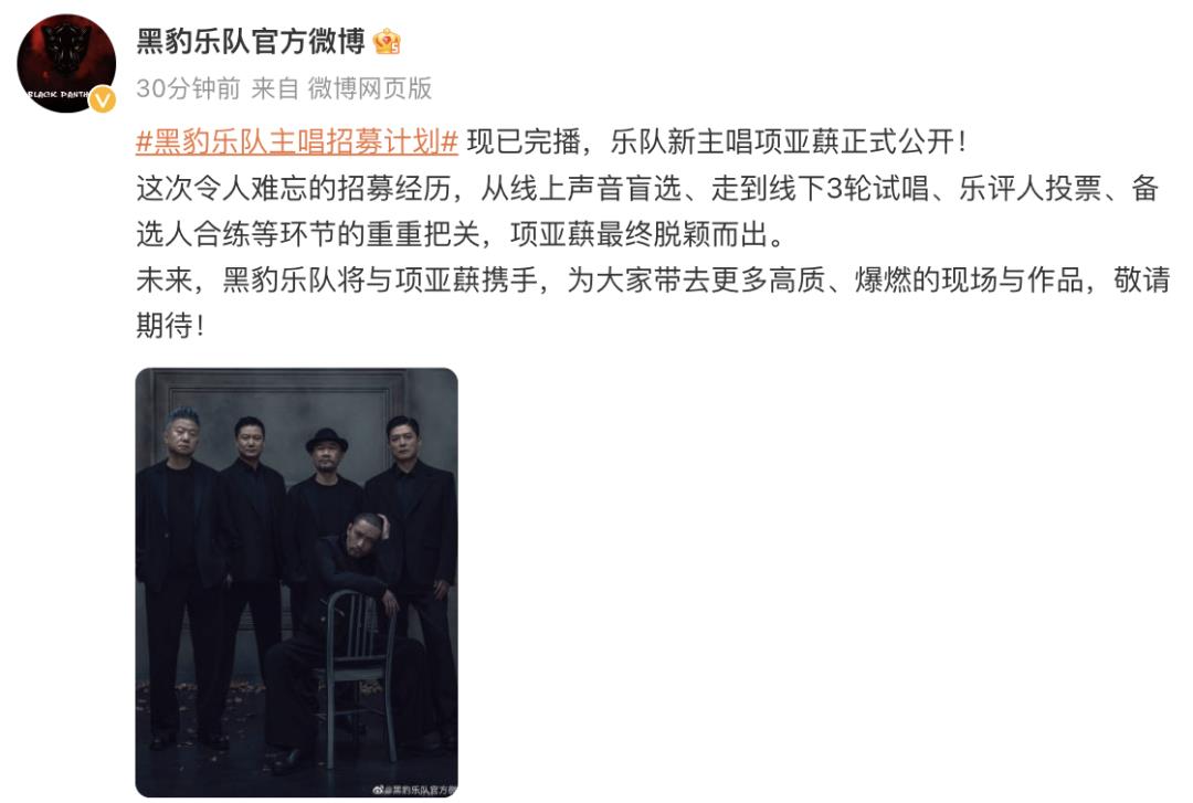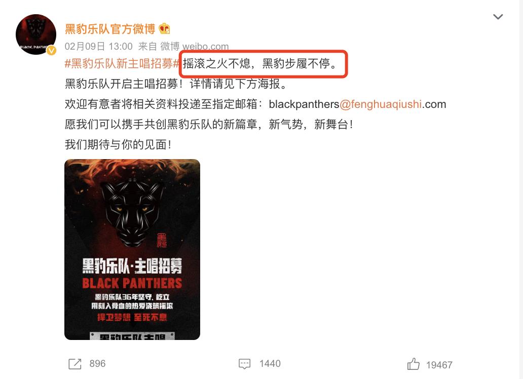 早在此前2月21号,黑豹乐队官微发布了招募新主唱的消息。