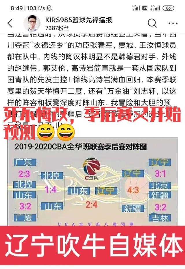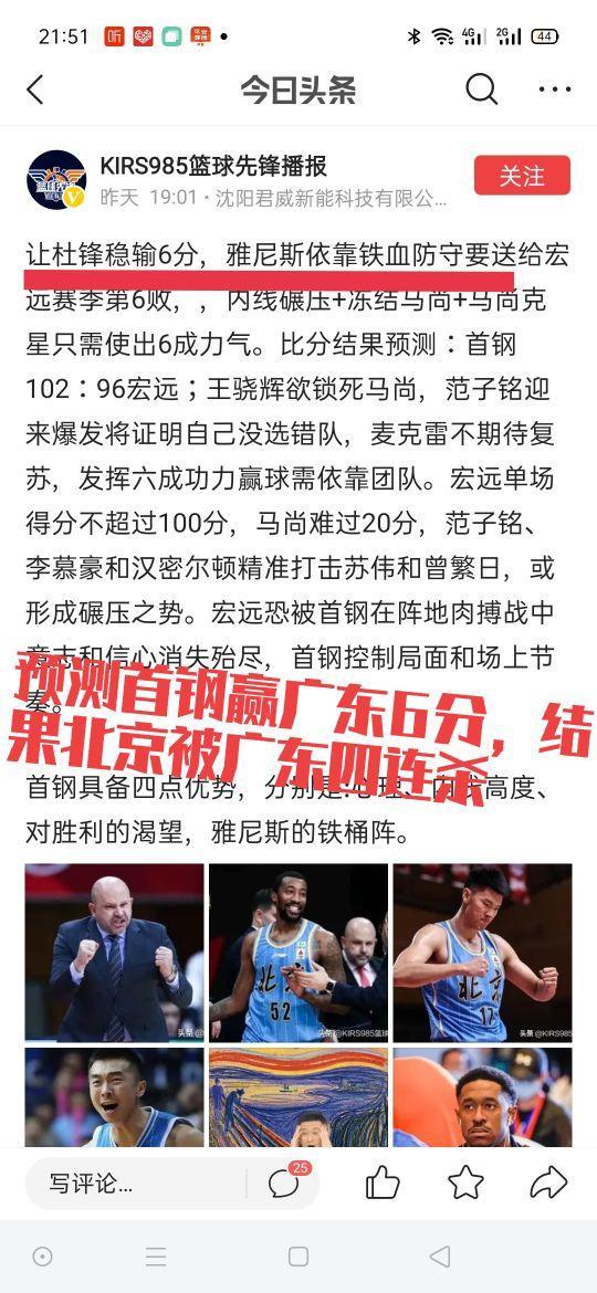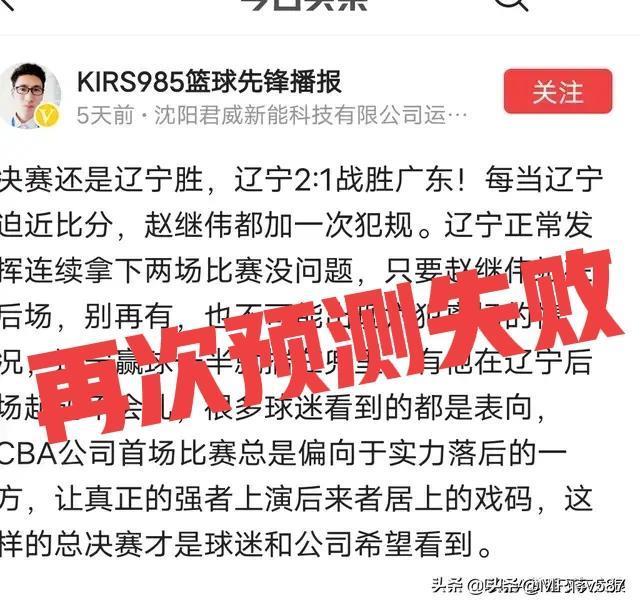 从“师弟来了要狂踢广东屁股”,到“广东将被马布里的北控淘汰”,又到“辽宁将轻松赢得第二冠”……每一次预测,他为了增加可信度,还把赢多少分都列举出来,真当自己是“半仙附体”?[笑哭][笑哭]