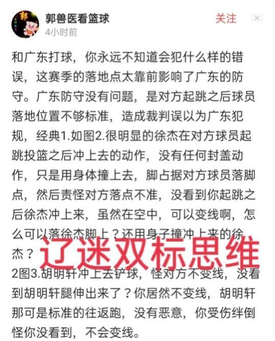 他超爱拿赵睿和徐杰的正常犯规说事!让他查查辽宁本赛季的技犯和恶犯,他却装聋作哑“顾左右而言他”……这样的“双标”真的是很兽医……