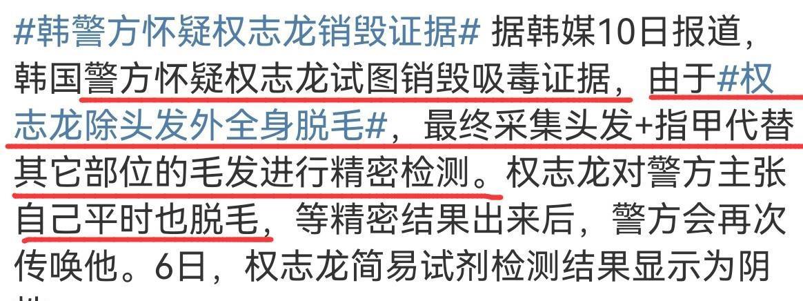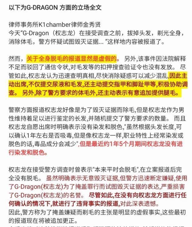 但媒体总喜欢添油加醋,报道出来警方怀疑权志龙企图销毁证据的新闻,还说他全身脱毛来遮掩什么。这下子可好,权志龙方面直接出来澄清了,打脸假消息,并且表示自己已经提交了充足的证据来证明自己的清白。那些先前报道不实新闻的媒体也只好低头道歉。