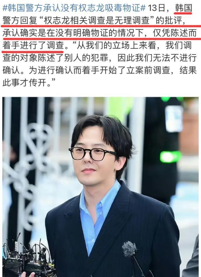 权志龙吸毒案大反转?没有立案,警方承认无证据,只有嫌疑人口供
