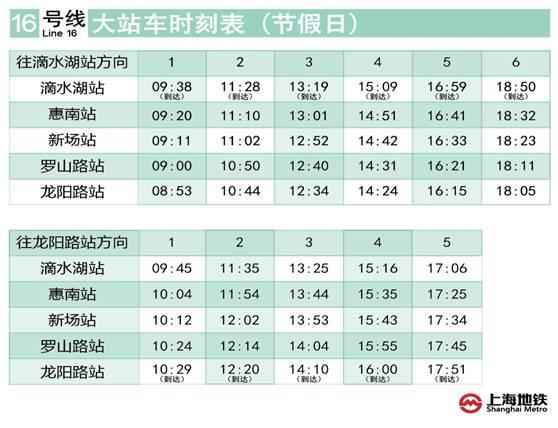 本次“大站车”开行时段覆盖工作日、节假日,龙阳路至滴水湖双向运行,但工作日早高峰往龙阳路方向的列车除外。