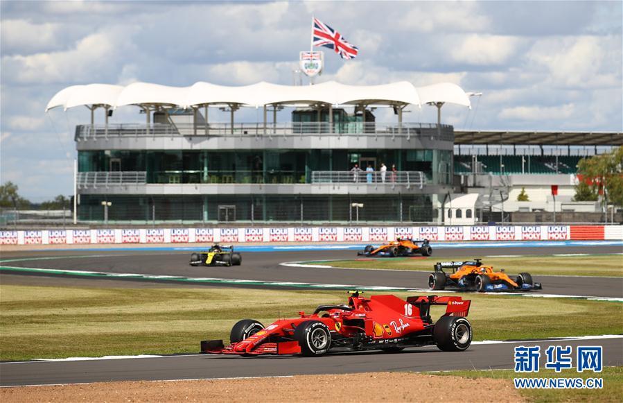 8月2日,法拉利车队摩纳哥车手勒克莱尔(前)驾驶赛车在比赛中。 当日,在2020赛季世界一级方程式锦标赛(F1)英国大奖赛正赛中,梅赛德斯车队英国车手汉密尔顿以1小时28分零1秒283的成绩夺得冠军,红牛车队荷兰车手维斯塔潘获得亚军,法拉利车队摩纳哥车手勒克莱尔获得第三名。 新华社/路透
