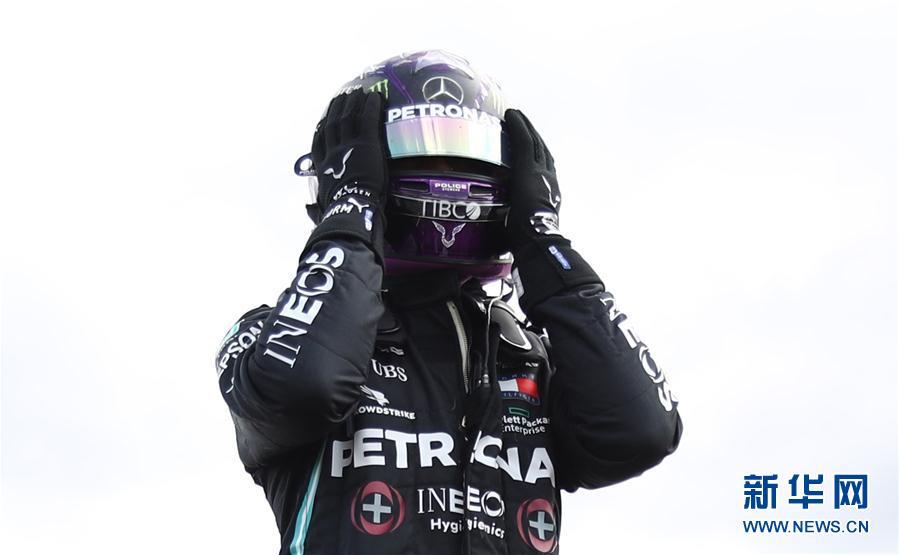 8月2日,梅赛德斯车队英国车手汉密尔顿在赛后庆祝夺冠。 当日,在2020赛季世界一级方程式锦标赛(F1)英国大奖赛正赛中,梅赛德斯车队英国车手汉密尔顿以1小时28分零1秒283的成绩夺得冠军,红牛车队荷兰车手维斯塔潘获得亚军,法拉利车队摩纳哥车手勒克莱尔获得第三名。 新华社/路透