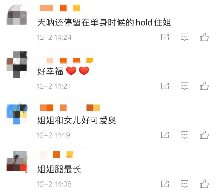 一直以来,为了让宝宝在舒适的环境中成长,谢依霖很少分享孩子的照片。此次罕见晒出同框照片,网友纷纷评论表示:"太幸福了"、"和女儿好可爱"。也有网友眼尖注意到了谢依霖的大长腿,夸赞:"姐姐腿最长"。