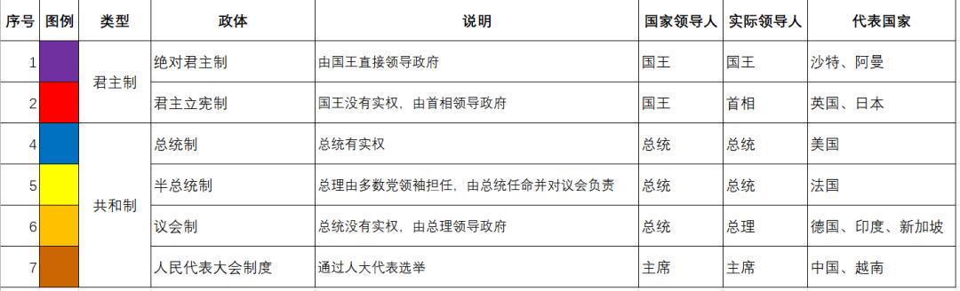 首先根据国家领导人是否世袭分为君主制和共和制。