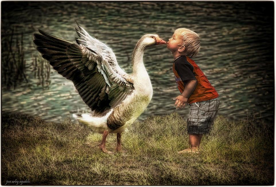 惊心动魄的瞬间结束了,最后来一张和谐的画面。湖上的一个吻,希望世界永远和平!