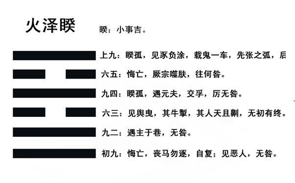 睽卦是易经三十八卦,上离下泽,故名火泽睽。