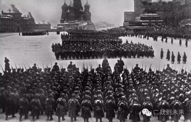 苏军士兵在克里姆林宫前接受检阅,然后直接开赴前线,英勇赴死,去迎战莫斯科城外的德军。