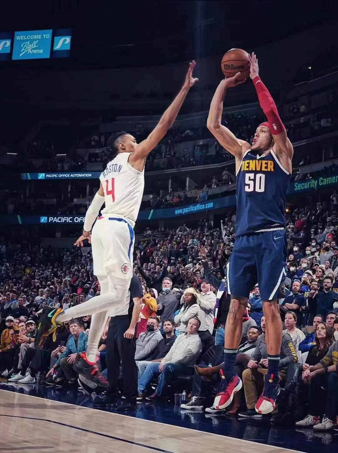 阿隆-戈登上赛季中期通过交易从奥兰多魔术来到了丹佛掘金。成为了上赛季MVP约基奇的内线搭档。他的号码由00换成了50,00的初衷是希望大家能瞪大双眼看他场上的表现。而50(扣篮大赛满分)的意义,相信大家都能明白。