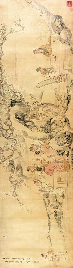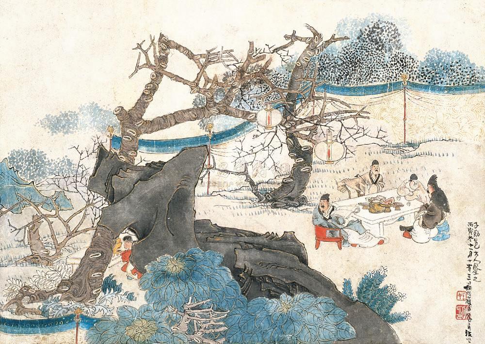 丁观鹏(清): 《春夜宴桃李园图》,现藏于北京故宫博物院藏