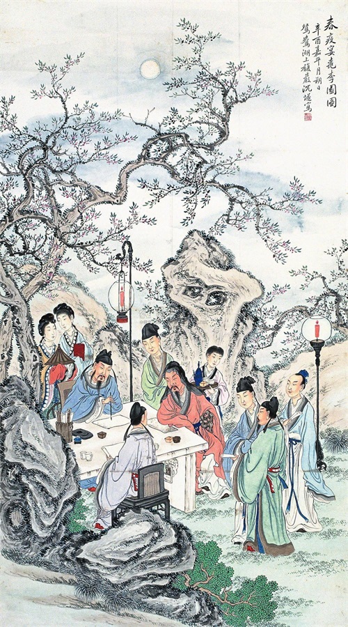 沙馥(沙山春,晚晴):《春夜宴桃李园图》,现藏于江苏省美术馆
