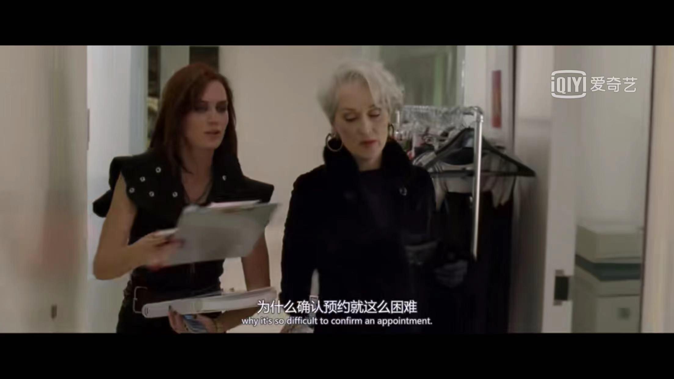 片名“女魔头”或者“女王”,就是给人工作狂,对工作非常挑剔的形象,影片米兰达这种形象的塑造并没有通过一通大吵大闹来完成,这开片3分多钟的时间就塑造了一个在公司拥有绝对话语权,同事们对她敬重又胆怯的形象,助理艾米莉对安迪所说她上一任助理因为得罪了米兰达,现在只能做电视购物,了了几句话就表明了米兰达在行业中的绝对地位。