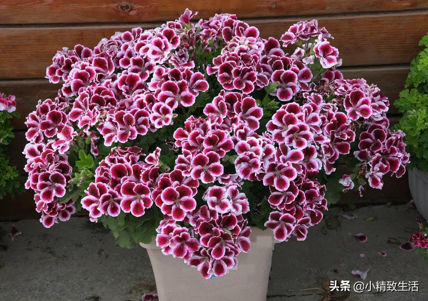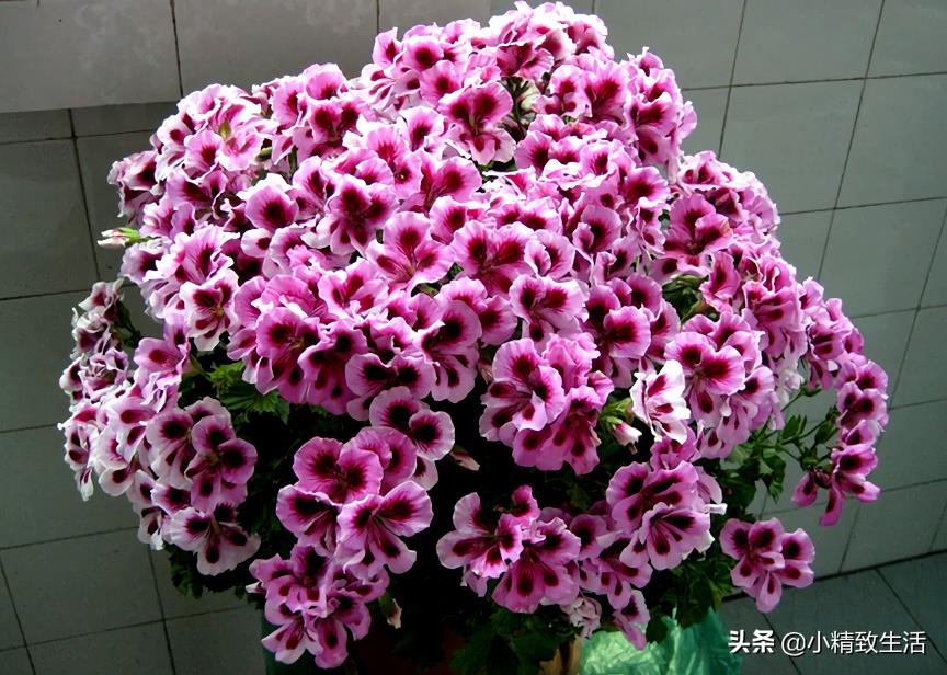 大花天竺葵,是牻牛儿苗科天竺葵属的花卉,相比其它的天竺葵品种,它的耐热耐寒性和抗病性更好,度夏更轻松,花色有粉、紫、红、白以及杂色,开花大而色彩鲜艳,特别是爆盆后更是花团锦簇,开成一个大花球,十分壮观,花友们给它起了个“大花天”的昵称。不过有很多花友养的大花天却是零零星星的开花很少,远远达不到爆花的效果,这是怎么回事呢?接下来,小精致生活就同大家一起学习一下怎样让大花天爆花。