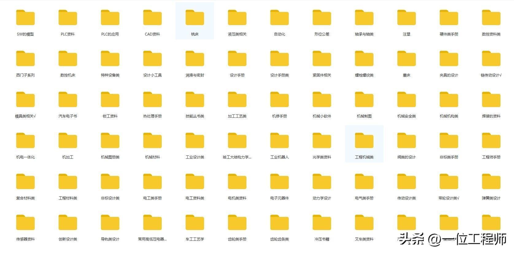 全网最新资料合集,让你找到真正自信的资料。1000G机械相关领域全部资料涉及的面很广,具体来说内容涵盖传统机械行业、机械加工、材料类、材料成型、电气行业、液压行业、机电类、机械传动、一千多份非标设备三维模型和非标设计等等领域。