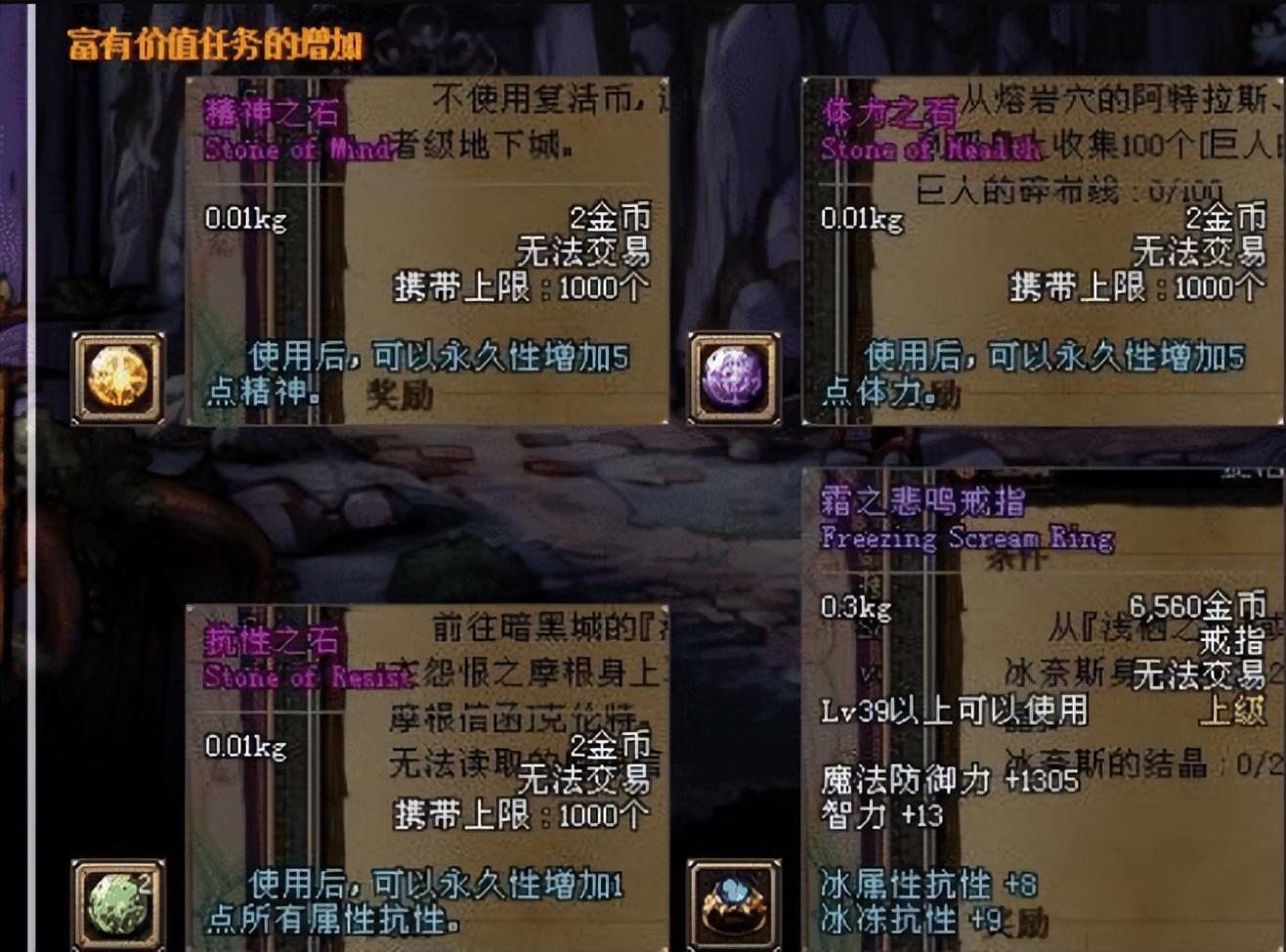 记得当年只要完成主线任务就会送各种属性石头,虽然不多,但这可都是免费送的,一些特殊的支线任务也是会送属性石头的。