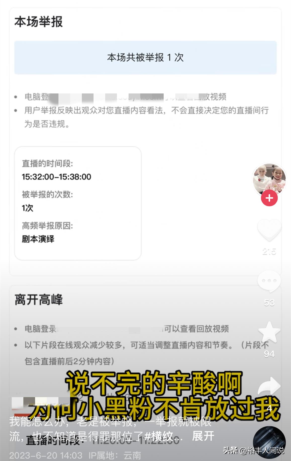 然而即便是铁打的身体和心理素质也抵不过网友的质疑。在其直播的时候,有网友根据自己的臆断,且没有任何事实依据,就对其进行网曝,并投诉,让其赖以为生的“直播救女儿”被迫终止。
