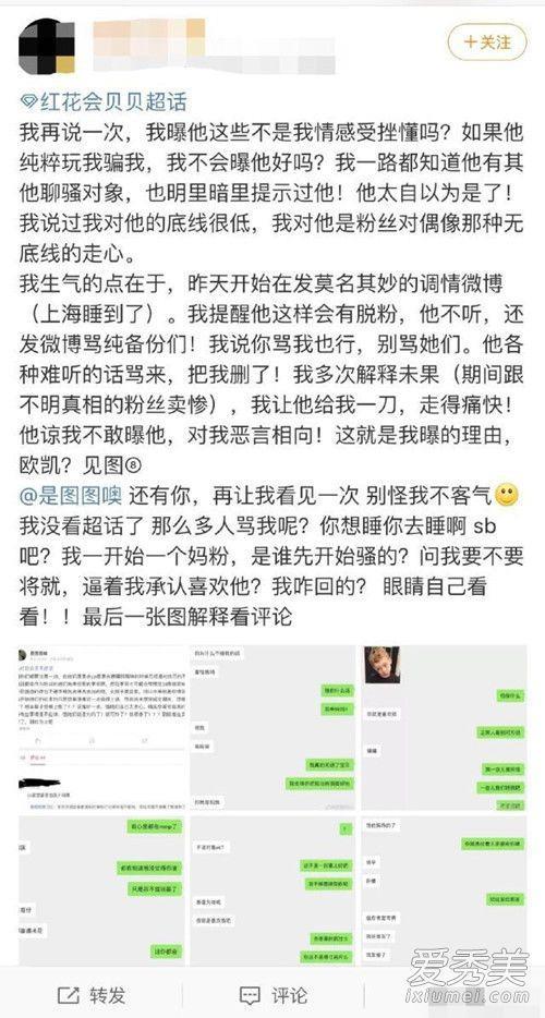 至于贝贝剁自己手指的原因,是因为有贝贝的粉丝,曝出了贝贝和自己以及和他人暧昧的记录。这位粉丝表示,自己知道贝贝在和自己暧昧的时候,同时也和他人聊着,但自己觉得并无不妥,直到后来贝贝突然开始发各种调情的微博。自己在对他进行劝诫后,他却把自己删了,因此这位粉丝直接曝出了贝贝暧昧调情的记录,同时要求贝贝为众多女粉丝道歉。