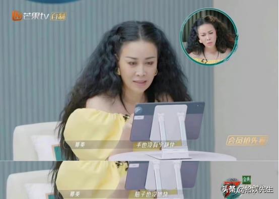 和宁静拼手速,为队员们抢歌时,她接连失败,无奈地表示自己: