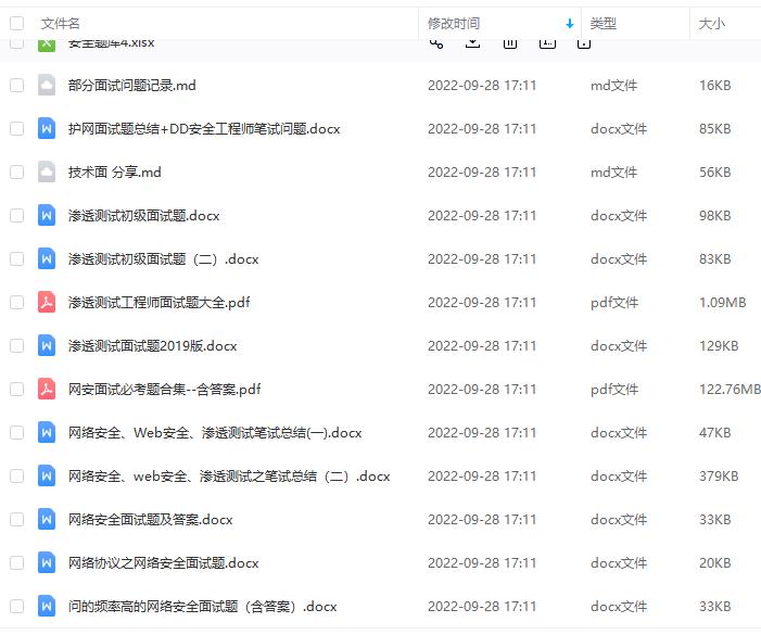 大厂面试题合集,私信我回复网络安全即可免费领取