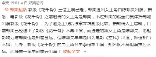 电影版《花千骨》男女主角名单出炉,郑爽退出女主角另有原因