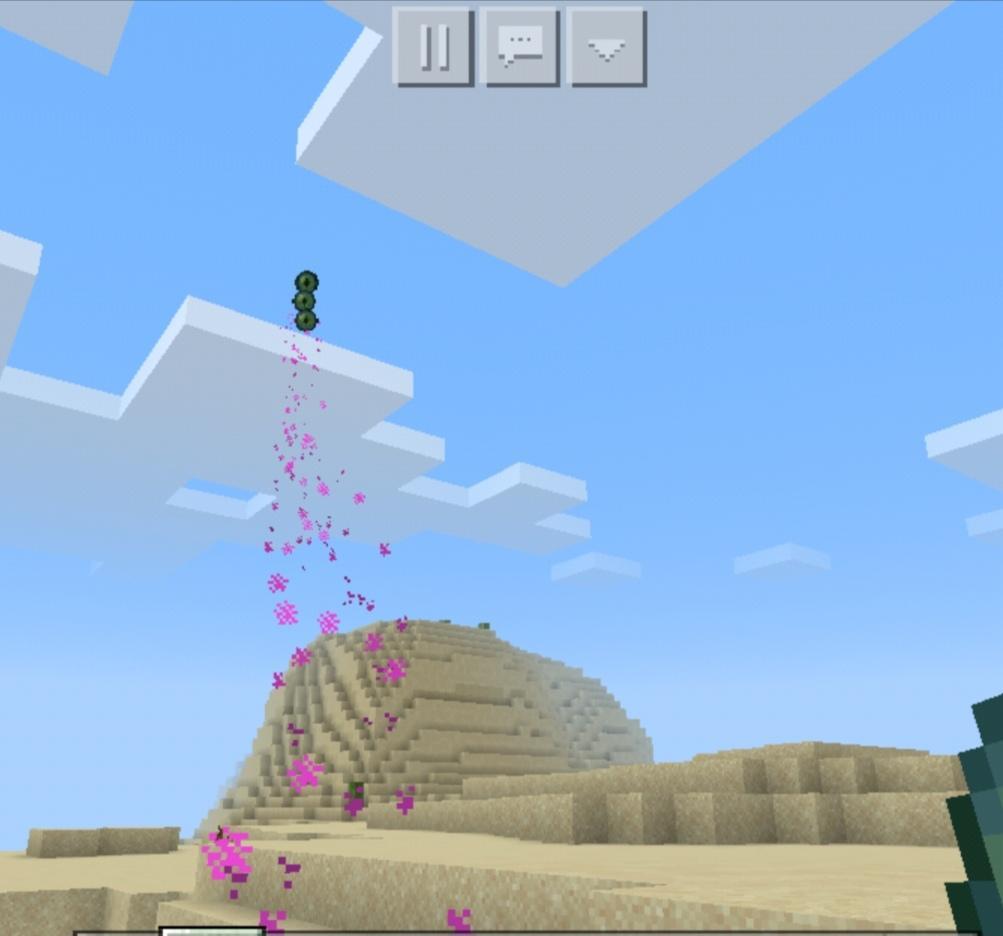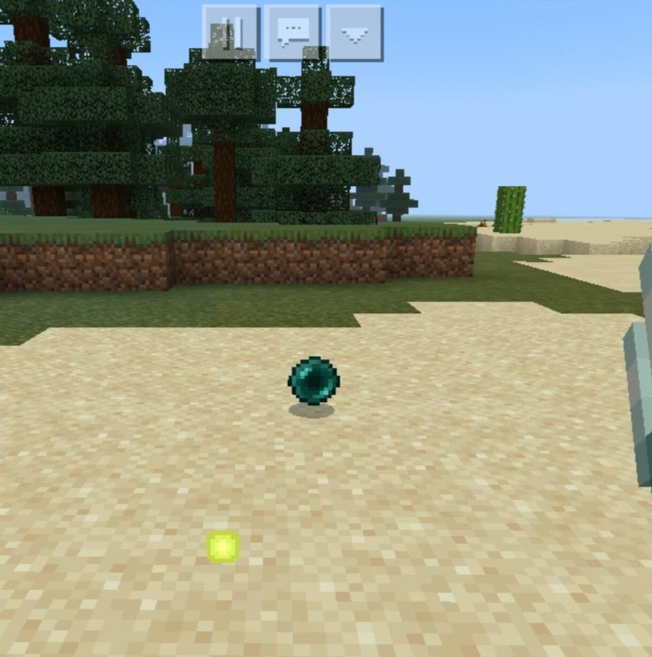 然后我们就可以沿着末影之眼的方向走,直到末影之眼不再飞向天空,而总是落在某一个地面上时,我们就可以在这个方块的位置向下挖了,然后我们就会挖到苔石,从而进入末地遗迹