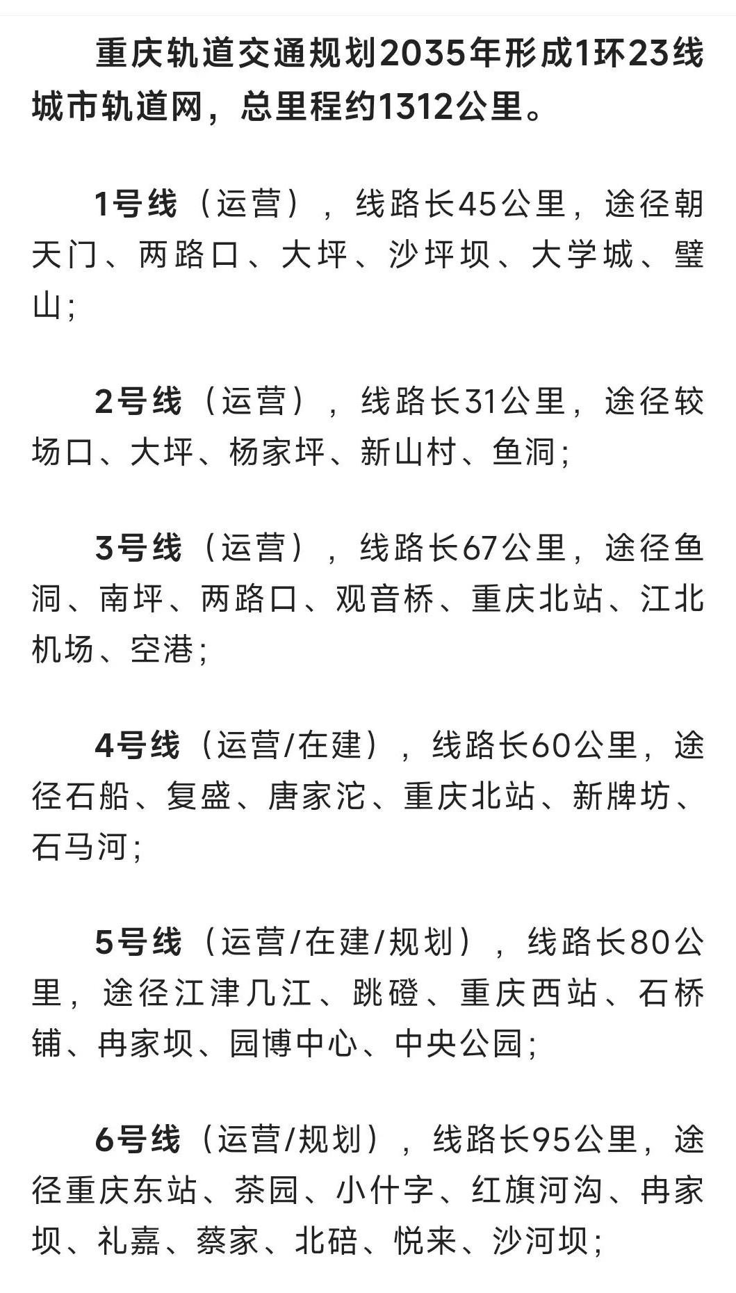 总而言之,重庆轨道交通规划2035的推出是这座城市发展的一大里程碑,它将为城市带来更多的机遇和挑战。