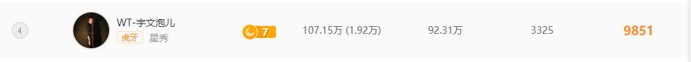 倆老铁就不写了,反正不不及宇文泡,当不上人气一哥。一个最近一直走下坡路,指不定哪天不行了。另一个50%是在石的粉丝,不值得一提。