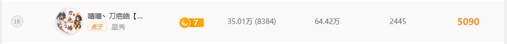 刀疤皓,外显64万,贵宾2445,日活5090。30%自己的粉丝,60看新闻,一圈钱就走。