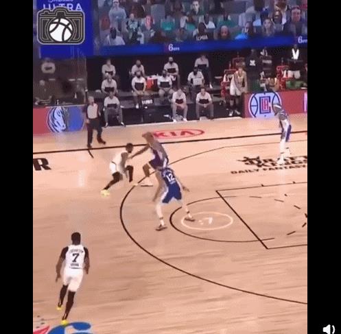 莫兰特招牌好招,持球快攻找到合适的位置后直接弹起上篮终结,比较出其不意的一招,先双手持球起跳,然后单手把球抛进,当然你要有信心不会被防守人封盖,别去单挑比你高的对手!