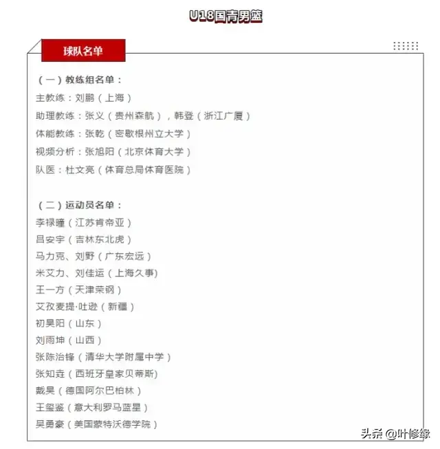 U17和U18国青男篮名单出炉,青训大户辽宁男篮全军覆没!