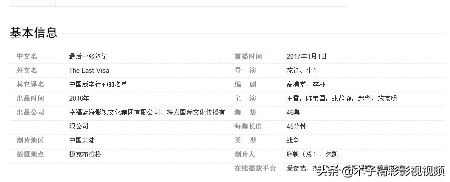《最后一张签证》是由花箐、牛牛执导,王雷、陈宝国、张静静领衔主演的战争剧 。