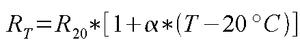 线材电阻取决于所处的环境温度,电阻和温度的关系可用电阻温度系数α 来表示。在温度T 时,线圈电阻或线材电阻的计算公式如下: