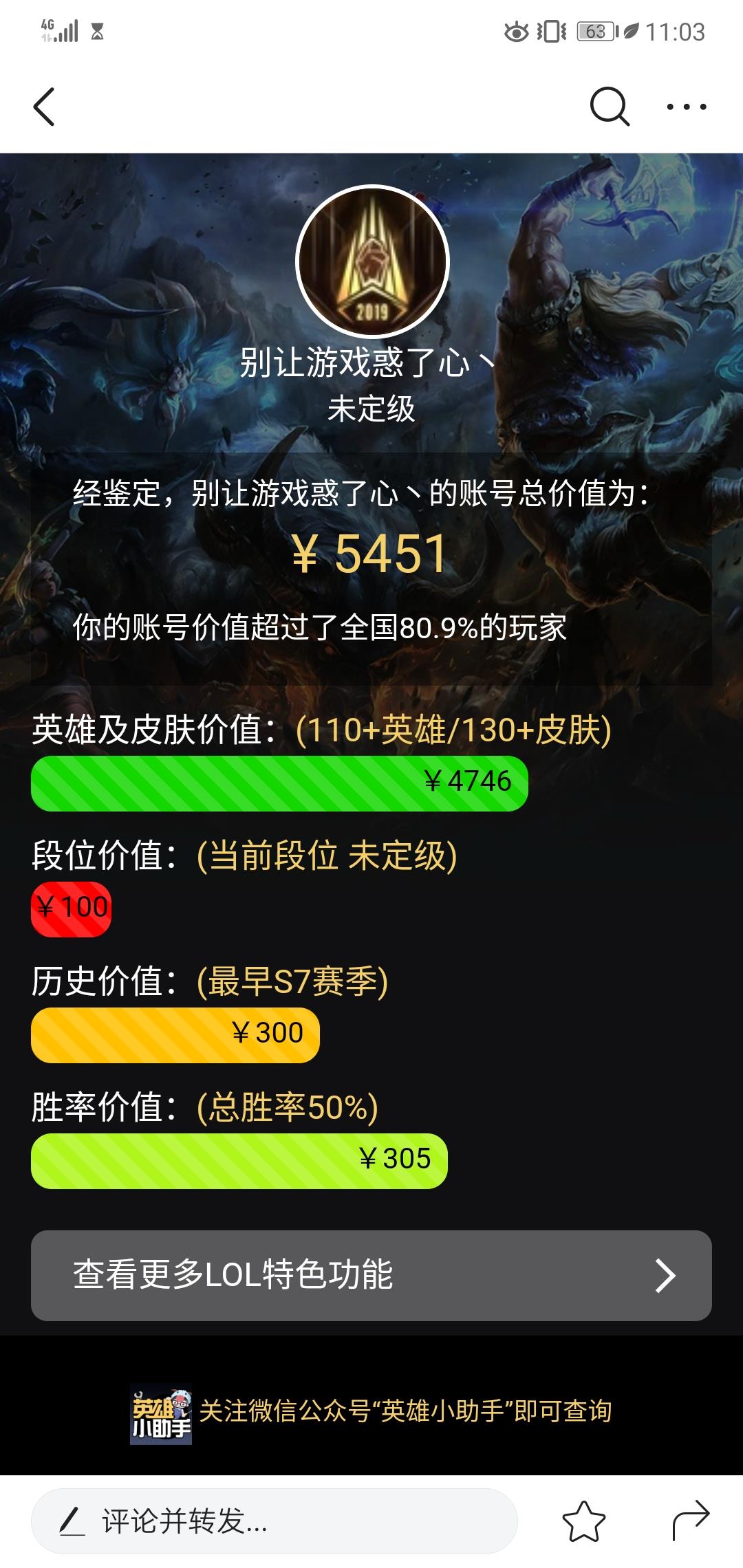 虽然每个人的账号估价或多或少,但是在lol里面的付出都是值得肯定的。