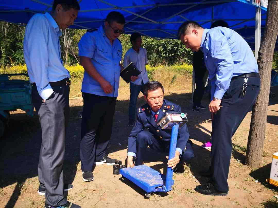 9月29日上午,在中牟县雁鸣湖镇雁鸣大道上路两侧的大闸蟹销售市场上,由该镇食药监所、工商质监所、公安交警、公路管理和旅游等部门成立的综合执法队,正在沿街检查在路边摆摊销售大闸蟹的商贩。工商质监执法人员首先对商贩使用的电子秤进行检测,对检测合格的电子秤粘贴检定合格标识,标识上注明该称的检测有效期为一个月。超过有效期后,需要再次进行检定。